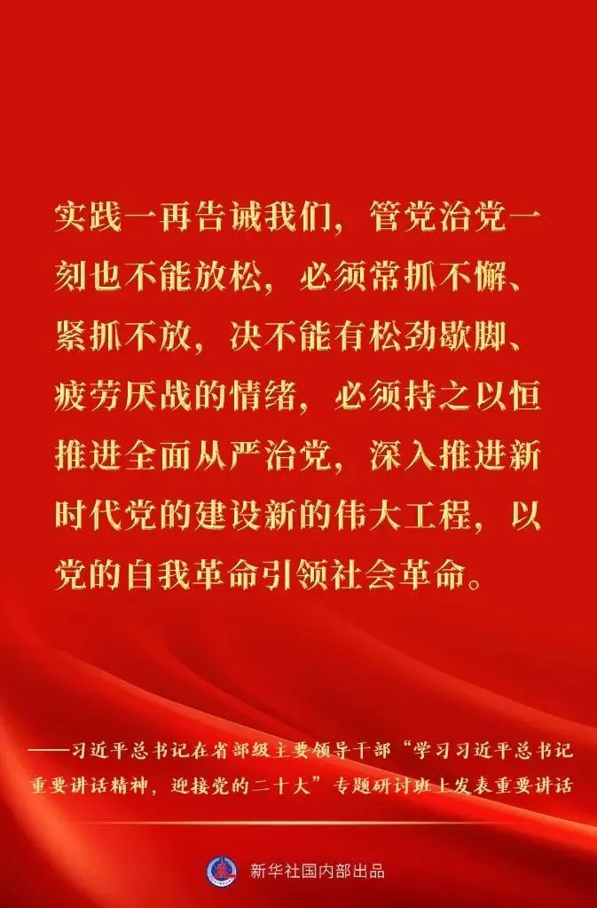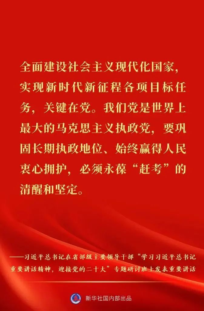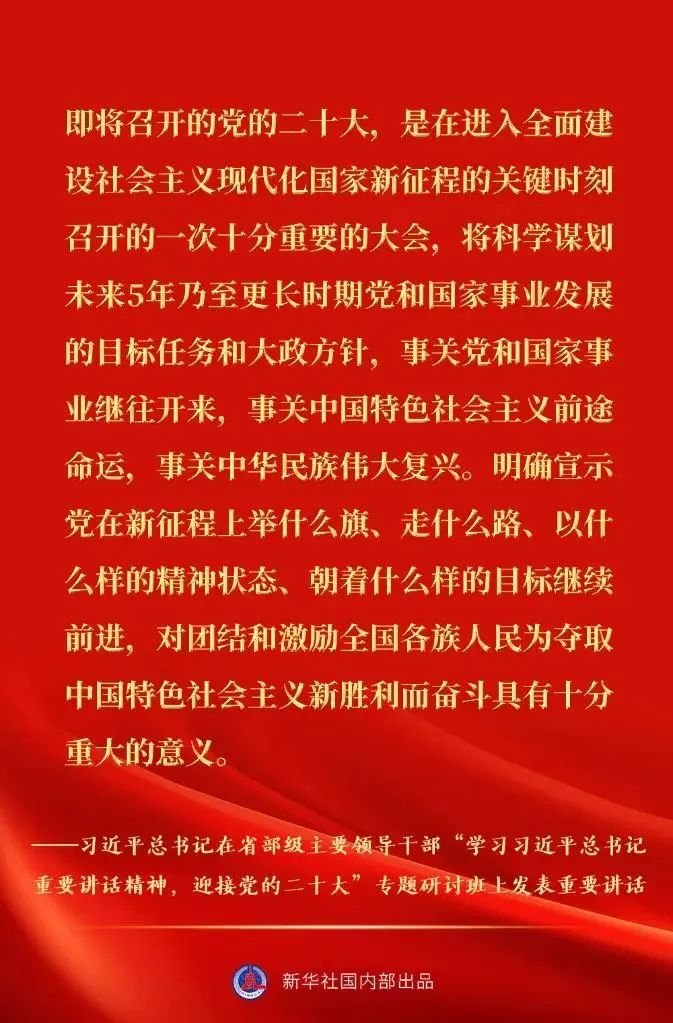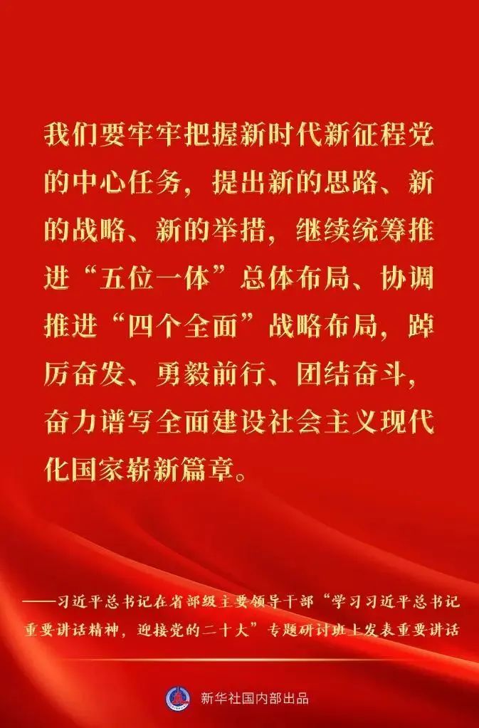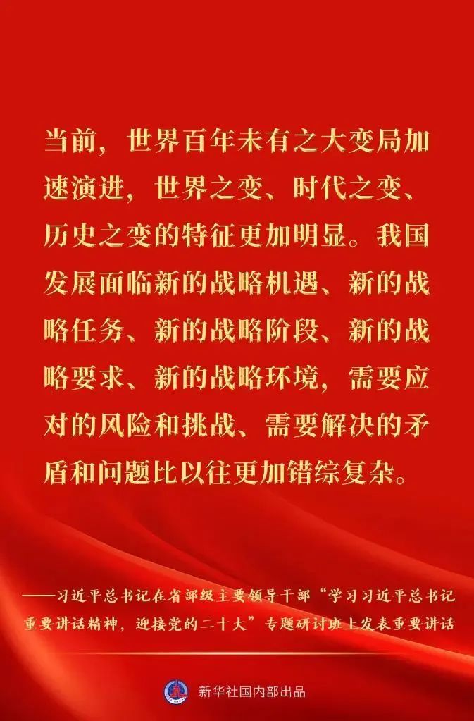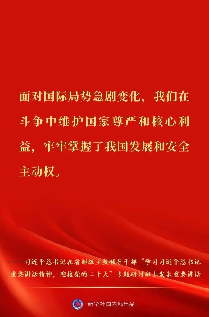 省部级主要领导干部“学习习近平总书记重要讲话精神,迎接党的二十大”专题研讨班26日至27日在京举行。中共中央总书记、国家主席、中央军委主席习近平发表重要讲话。一起来看金句速览。