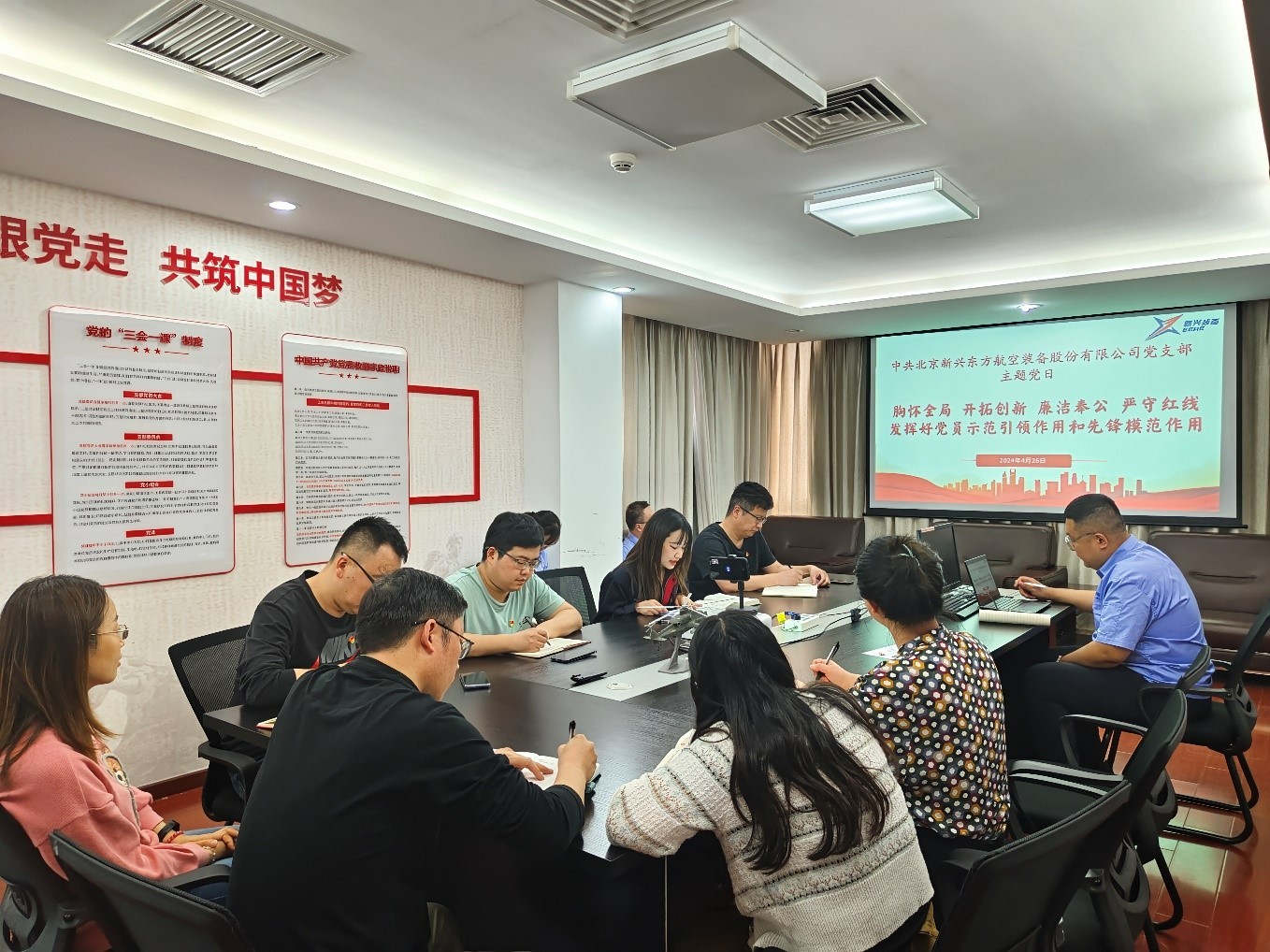 4月26日,新兴装备党支部开展了“胸怀全局、开拓创新、廉洁奉公、严守红线,发挥好党员示范引领作用和先锋模范作用”主题党日活动,传达学习了习近平总书记关于发挥党员先锋模范作用的部分重要论述,学习了上级党纪学习教育工作要求和安排,观看了纪录片《中国脊梁——“铸剑”海天 罗阳》,举行了“党员示范岗”授牌仪式。